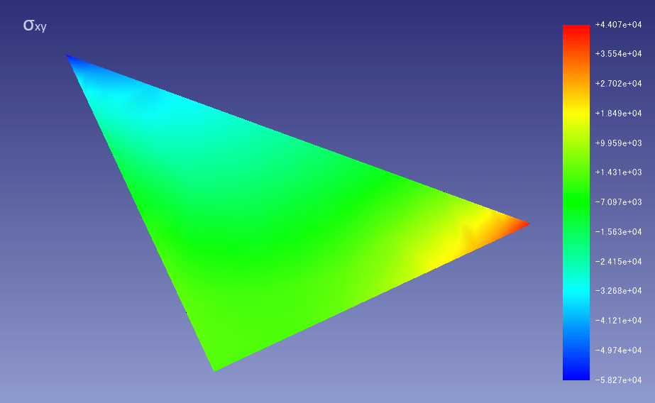 斜辺の面にσxxは発生していませんが、二等辺の面には100kPaの応力が発生しています。