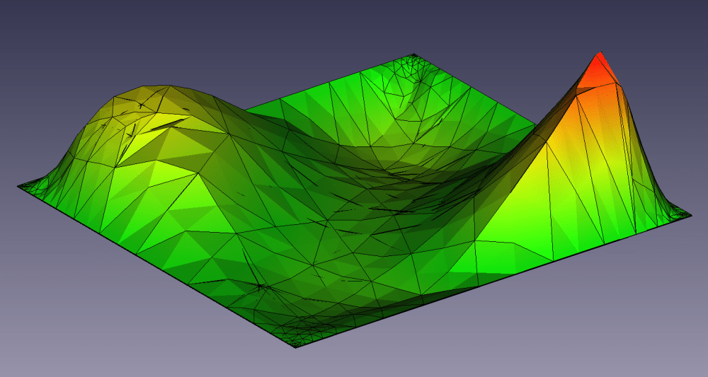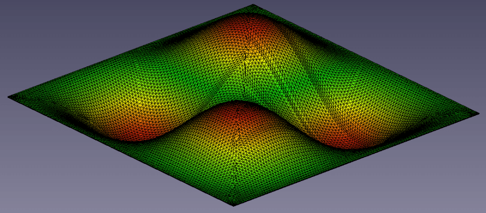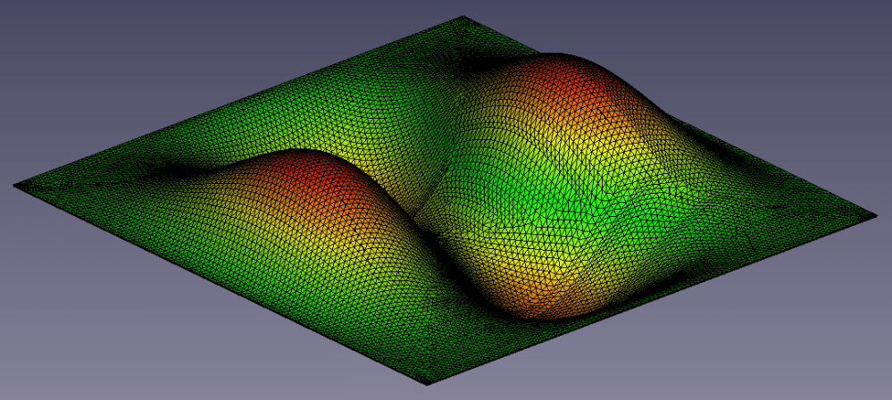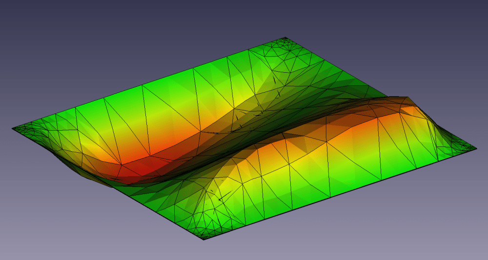 Step2においてはScilabにより実施した薄板の変形及び強度解析の結果をFreeCADを用いて検証してい見ます。