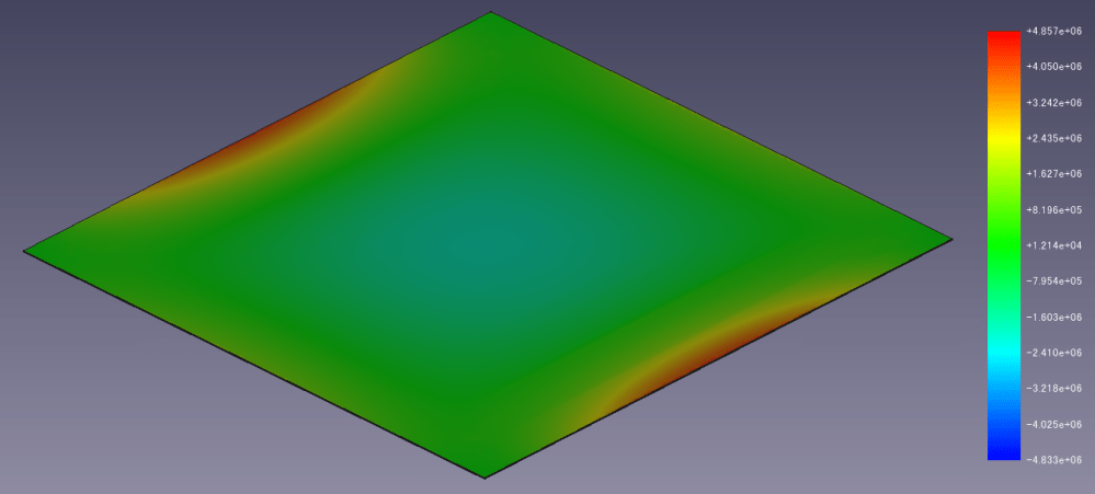 Step1でも申し上げましたが、FEMの計算結果はメッシュ粗さに強く依存するため、結果の取り扱いは注意が必要と考えます(補足:薄板解析は汎用3D-FEMの苦手領域です)。このような状況に当事業はFreeCADとScilabのダブルチェックによる簡単で比較的安価な検証を提供致します。