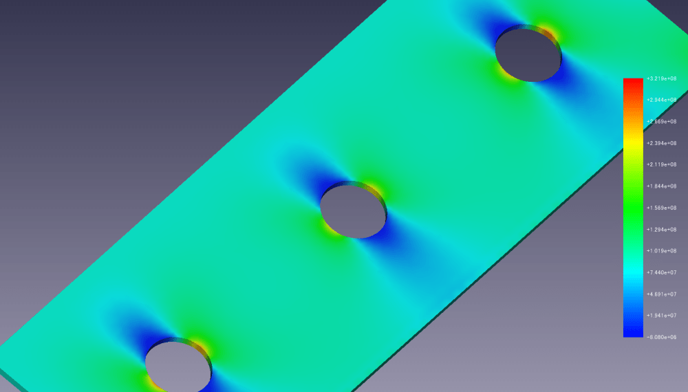 Scilabモデルはせいぜい10x10マスのモデルであり、実際に現場で問題となる局所的な応力議論に対応出来ません。そこでFreeCADを用いて局所的な解析を試みます。