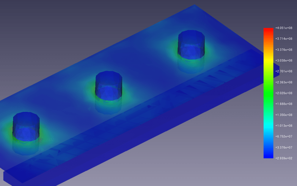 1.2項の計算結果である250MPa荷重を、リベット周りを拡大したモデルにて更に解析してみます。