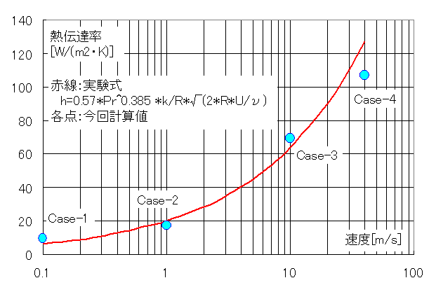 h=0.57*Pr0.385 *k/R*(2*R*U/ν)1/2 :参考文献[1]の3.4.2項より