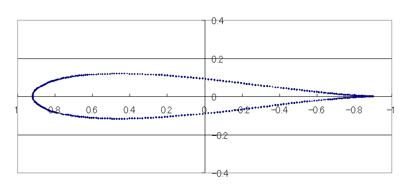 (適当なものが見つけられなかったため、2次元翼理論に用いられるジューコスフキー翼を作成しました(参考文献[1]) 。)