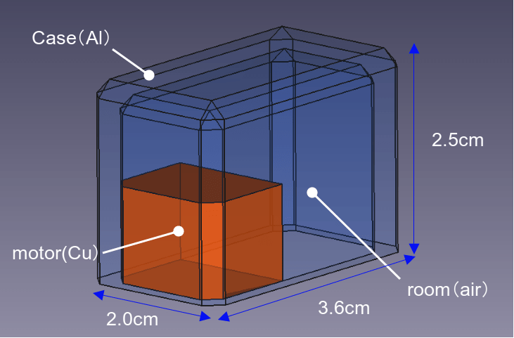 ・ルーム:ケース内のモータ以外の部分を空気とした。