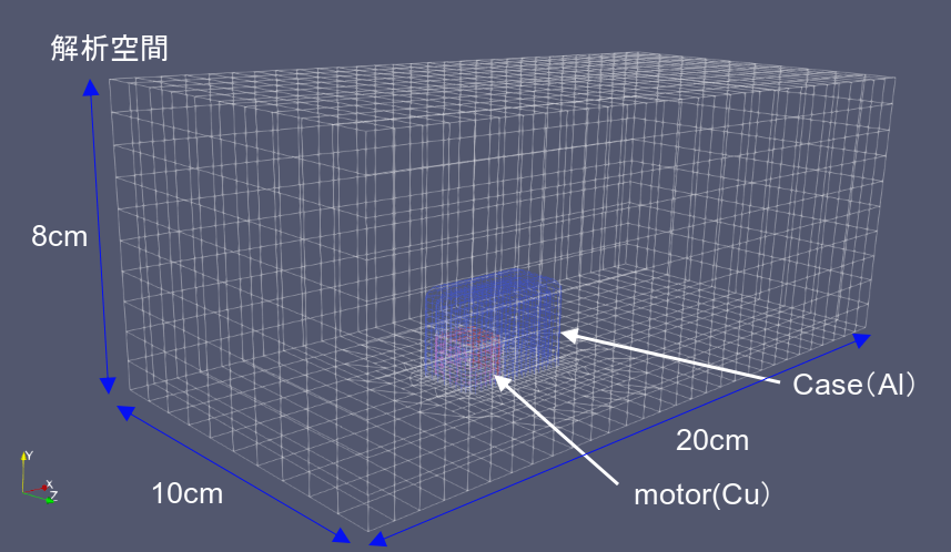 ・メッシュ:20(奥行) x10(幅)x 8(高さ)cmを30x10x10の合計3000マスに分割。
