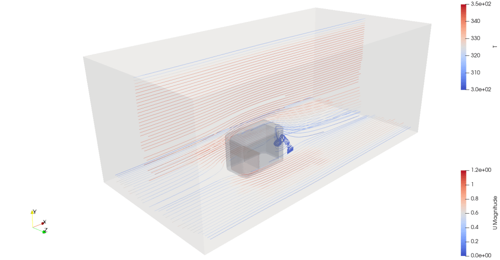 OpenFoamを用いて熱流体解析を実施します。