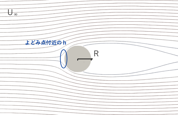 h=0.57*Pr0.385 *k/R*(2*R*U∞/ν)1/2・・・(5)