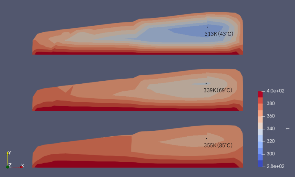 以上OpenFoamによる計算結果は鶏むね肉調理の実経験とよく一致しました。