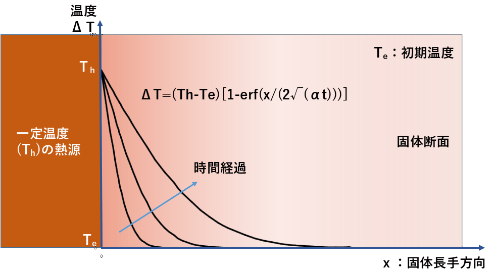 ΔT=(Th-Te)[1-erf(x/(2√(αt)))]