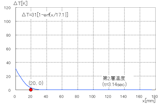 (境界層と第2層の境界面では最初0[K]が10.5秒後には62[K]に到達するという状況です)
