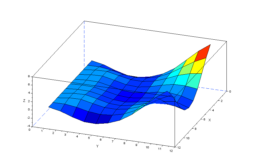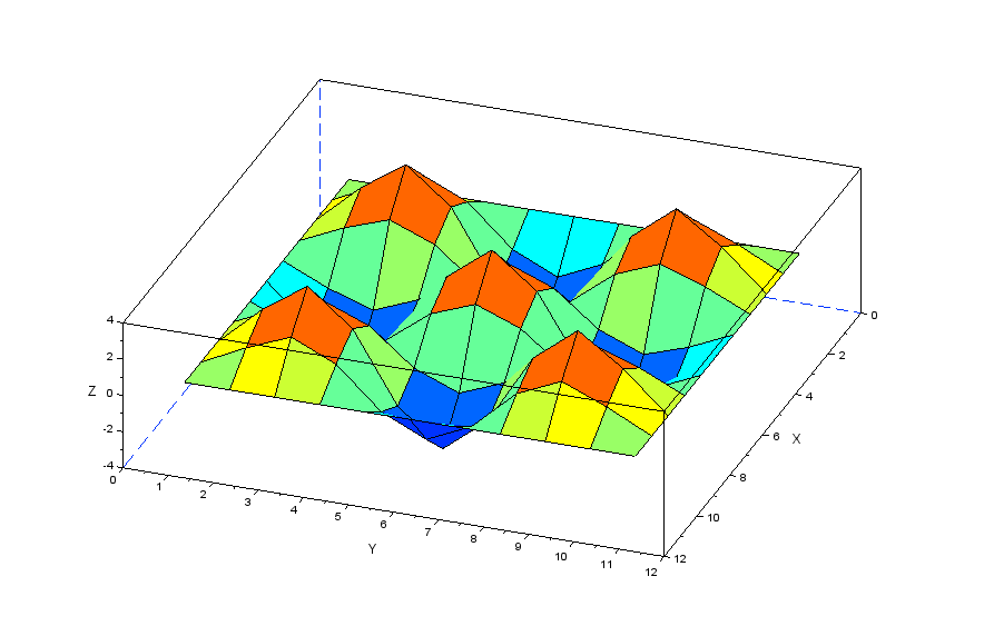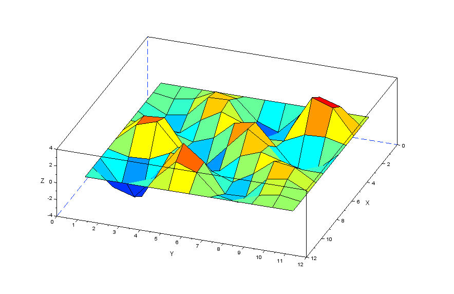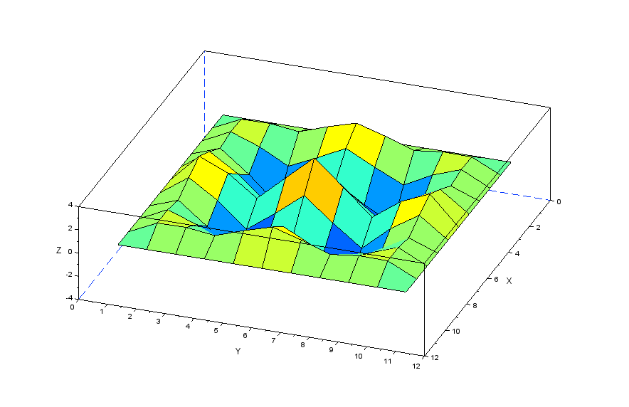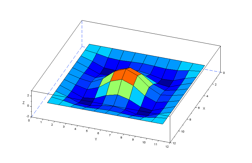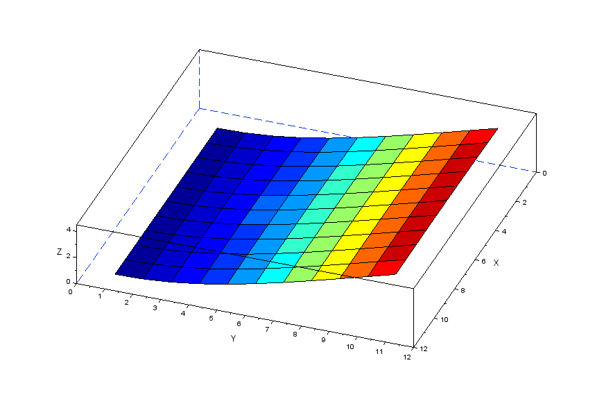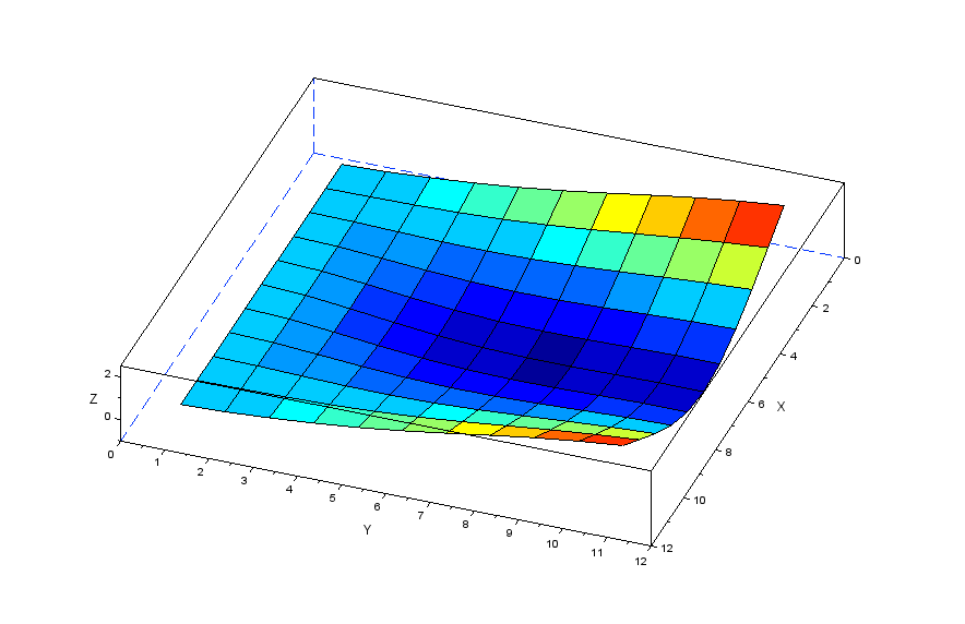 更に張力の分力を表現する行列[Nstr]を作成することで以下のscilabモデルにより膜モデルの振動を解析してみます。