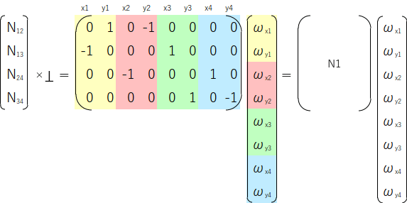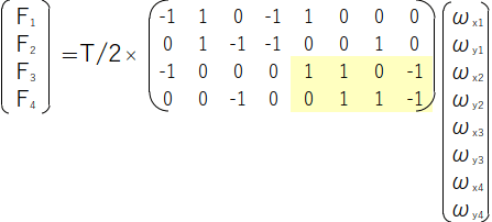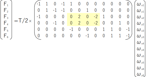 2つを合わせること(黄色部分)で6点モデルでの張力を表現する行列が出来上がります。