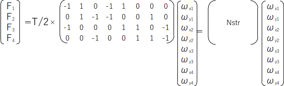 Scilabに用いる張力の分力を表現する行列[Nstr]は以下となります。